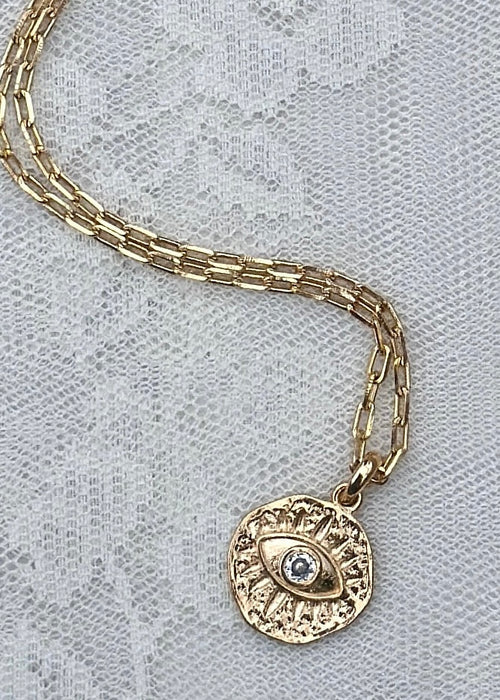 Gold Filled 18” Evil Eye Pendant with Cubic Zirconia