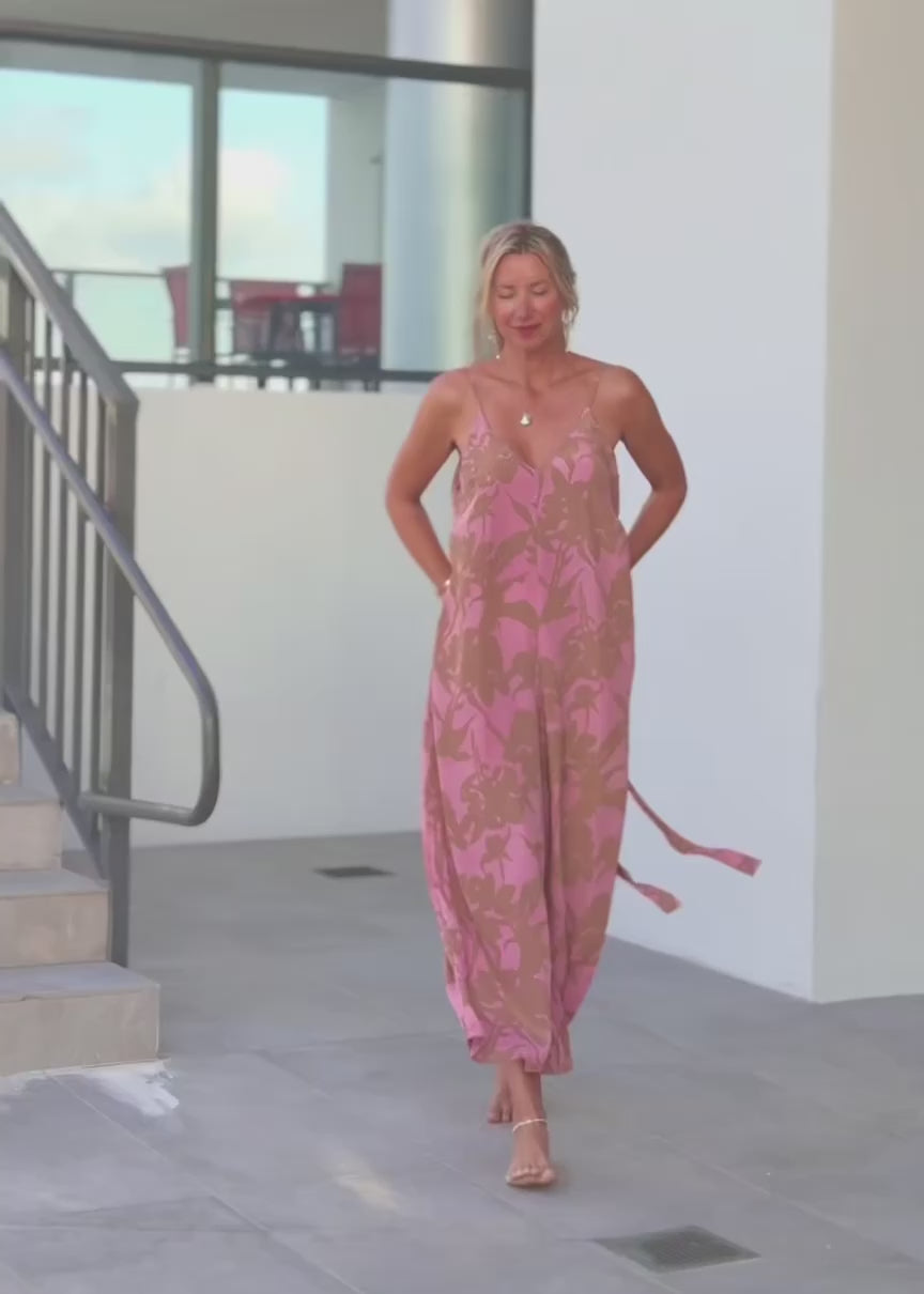 The Riviera Romper features a relaxed wide-leg silhouette and an adjustable waist tie, this one-size beauty drapes effortlessly on every body.